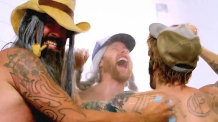 A banda interpreta um grupo de caminhoneiros que durante uma parada em sua viagem, resolvem tomar banho juntos. É isso mesmo!
