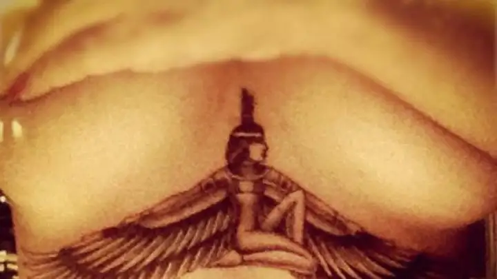 A cantora divulgou na noite passada (09) em seu Instagram, o desenho da deusa egípcia Isis que ocupa todo o espaço abaixo de seus seios. "Deusa Isis, mulher completa, modelo para as futuras gerações" escreveu Rihanna ao postar a imagem, acrescentando a dedicatória para sua avó: "Vovó Dolly, sempre em meu coração".