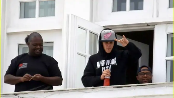 O cantor, que esteve ao redor do mundo promovendo seu último álbum "Believe" fará dois shows no país, em São Paulo e no Rio, neste fim de semana, e já foi visto hoje na sacada de seu hotel em Copacabana.