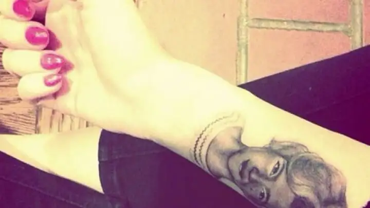 A imagem ao lado é a da mais nova tatuagem de Miley Cyrus. Desta vez a cantora escolheu homenagear a sua avó Loretta Finley.