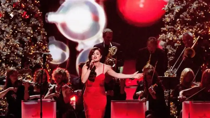 Lucy Hale e Hunter Hayes apareceram ontem (2) no especial de natal da Country Music Association, apresentando clássicos natalinos.