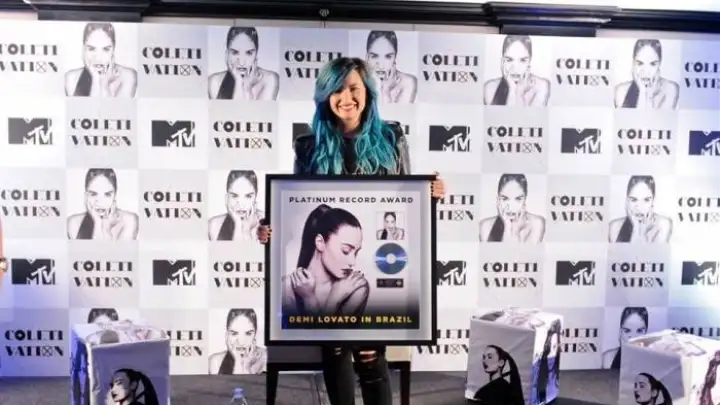 Demi Lovato recebeu, em sua última vinda ao Brasil, o certificado de platina pelas vendas de seu álbum "Demi", que foi lançado em maio deste ano.