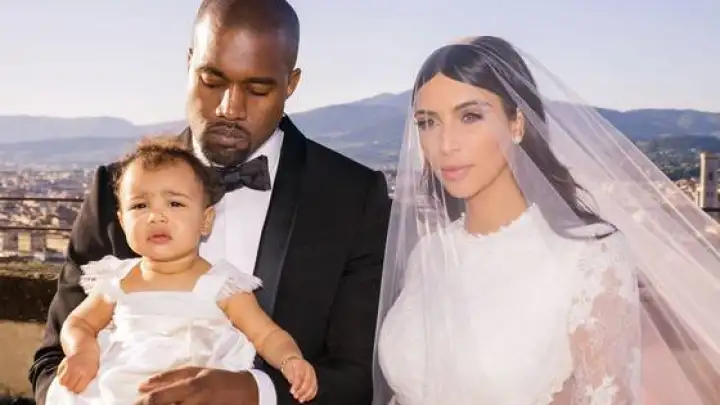 As novas fotos, liberadas pelo E!, mostram o rapper com a família da noiva em uma sala, ao lado do padre que oficiou a cerimônia e ao lado da nova esposa e sua filha, North West.