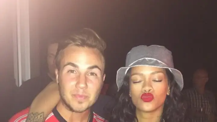 Depois de assistir à final no Maracanã, a estrela pop marcou presença na festa da delegação alemã neste domingo (13) e divulgou em seu Twitter fotos com Klose, Podolski, Schweinsteinger, o herói da partida, Götze, e a desejada taça, que em tese só pode ser tocada por chefes de Estado e pelos jogadores campeões.