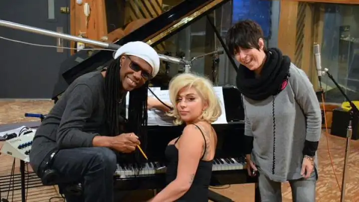 A cantora Lady Gaga voltou retornou ao estúdio de gravação neste fim de semana nos EUA e se encontrou com o guitarrista Nile Rodgers e a compositora Diane Warren.