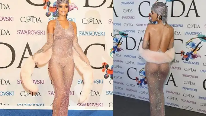 No CFDA Awards, premiação organizada pelo Conselho de Estilistas de Moda da América, a barbadiana chamou a atenção ao desfilar pelo tapete vermelho usando um vestido longo e transparente com 216 mil cristais Swarovski feito pelo estilista Adam Selman.