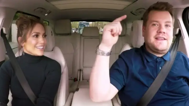 Jennifer Lopez foi a convidada mais recente do quadro "Carpool Karaoke" no talk show de James Corden.