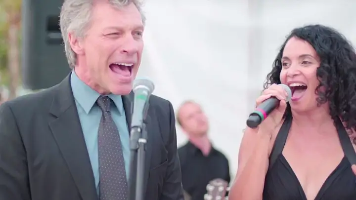 Jon Bon Jovi fez a vontade dos presentes em um casamento na Flórida ao cantar "Livin' On A Prayer" junto com a banda contratada para a festa.