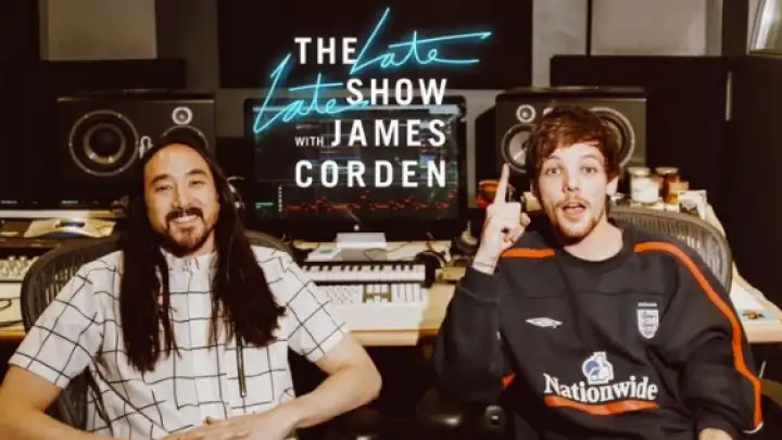 Steve Aoki e Louis Tomlinson continuam a parceria apresentando "Just Hold On (With Steve Aoki)" no talk show de James Corden na noite de ontem (13).