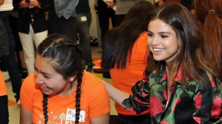 Selena Gomez visitou estudantes de uma escola em Los Angeles nesta semana como porta-voz da Coach, grife de roupas nova-iorquina, que fez parceria com o projeto social "Step Up".