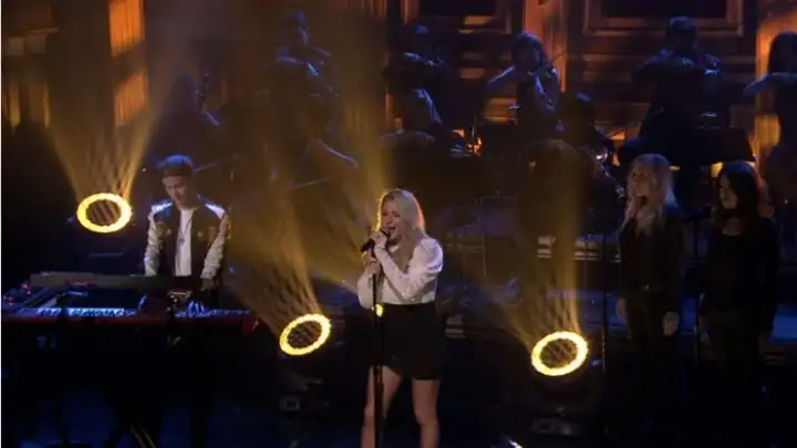 Kygo e Ellie Goulding reprisaram ontem (26) no palco do talk show de Jimmy Fallona parceria que já havia acontecido no estúdio. os dois cantaram o single "First Time" lançado em abril passado.