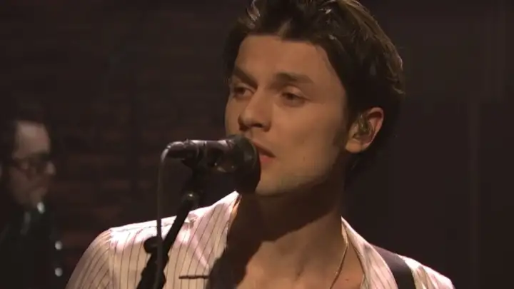 O cantor James Bay subiu ao palco do programa "Late Night With Seth Meyers", nesta quarta-feira (11), para apresentar seus dois novos singles: a agitada "Pink Lemonade", que já conta com um videoclipe lançado no final de março, e a mais lentinha e acústica "Us",