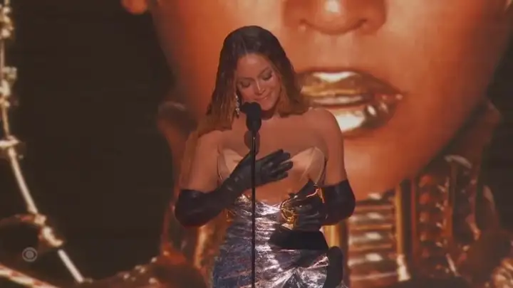 Em seu discurso, Beyoncé precisou conter as lágrimas e admitiu a emoção do momento histórico. "Gostaria de agradecer ao meu tio Johnny, que não está aqui. Mas está aqui em espírito", disse a cantora, se referindo ao tio que a inspirou fortemente no disco "Renaissance", além de ter sido uma das pessoas a apresentar a música e cultura para ela, quando mais nova.