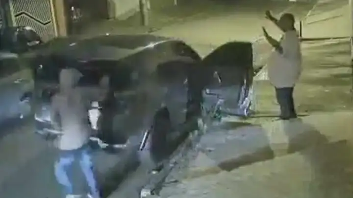 O sambista entrega a chaves e levanta os braços enquanto o assaltante leva embora o carro e também a bolsa que o artista levava. A polícia está investigando as imagens em busca de pistas sobre o paradeiro do criminoso e do automóvel.