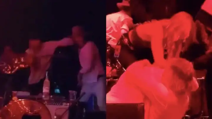 Ao se aproximarem um do outro na lateral do palco, os dois trocaram mais ofensas e começaram a pancadaria, com direito a troca de socos e "guitarradas". Sobrou até para o outro guitarrista, que acabou sendo derrubado em cima da bateria no meio da confusão. Veja o vídeo abaixo: