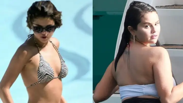 A artista postou duas imagens, nas quais aparece de biquíni, nos Stories de seu Instagram: uma de 2013, de acordo com a imprensa internacional, e outra de 2023, comparando a diferença corporal entre as duas.