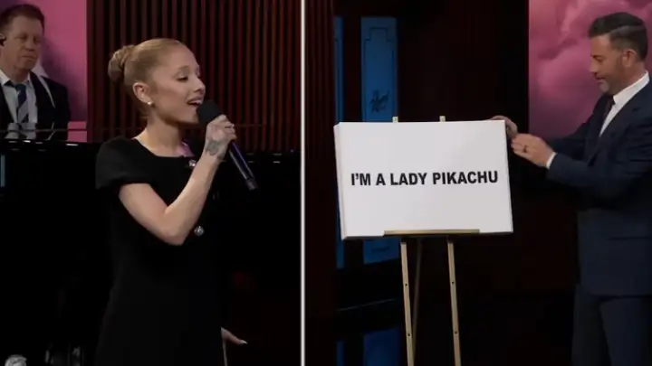 Em plena campanha para ganhar o Oscar, Ariana Grande esteve na noite de ontem (5) no tlak show apresentado por Jimmy Kimmel na televisão dos EUA.