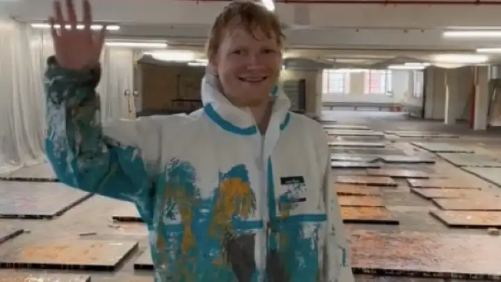 Ed Sheeran revelou que pretende vender várias pinturas no estilo de Jackson Pollock por aproximadamente £900 (aproximadamente R$ 6.686,5 na cotação de hoje) para arrecadar fundos para sua fundação (Foto: Reprodução Instagram).