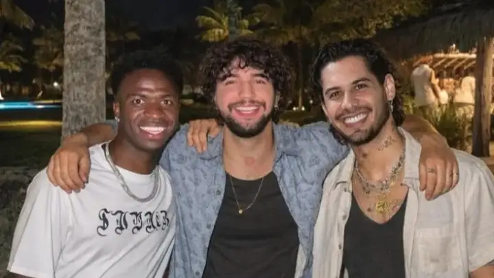 O cantor Nattan usou o Instagram, neste sábado (27), para publicar uma montagem ao lado de Vini Jr. e Zé Felipe depois de uma gafe envolvendo o jogador, o que acabou repercutindo nas redes.
