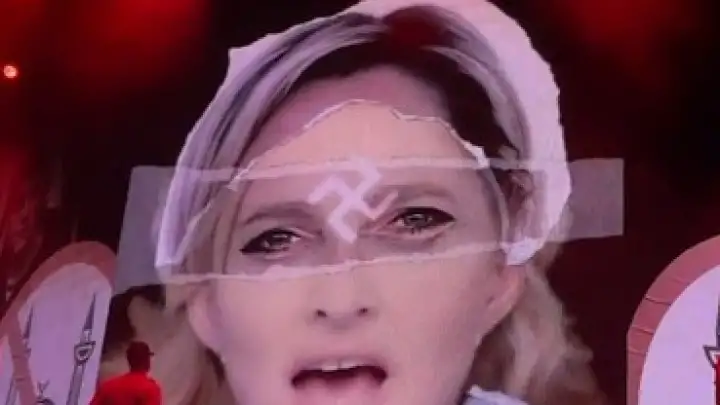 A cantora, que lançou a turnê "MDNA" no fim de maio, criou polêmica ao exibir o símbolo nazista sobreposto ao rosto da política durante uma performance da faixa "Nobody Knows Me".