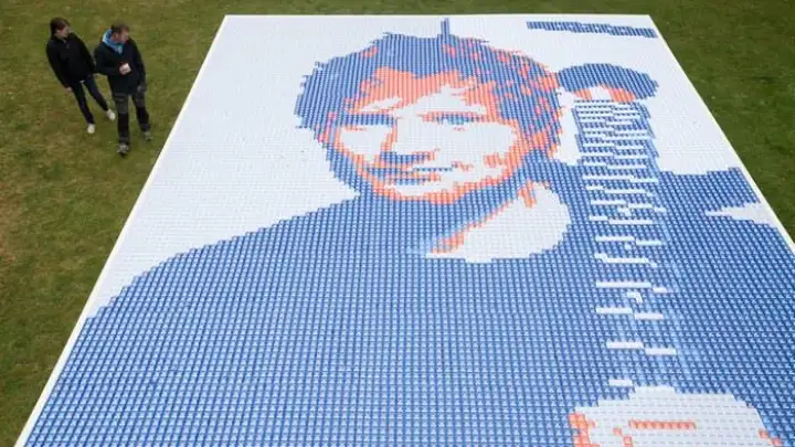 O astro britânico Ed Sheeran recebeu uma obra de arte em sua homenagem para comemorar os três shows esgotados no Wembley Stadium, em Londres, a serem realizados nos dias 10, 11 e 12 de julho.