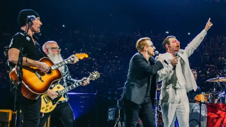 Bono os apresentou falando que as vidas destas pessoas estariam para sempre ligadas à cidade. "Há três semanas o palco dessa banda foi roubado. Nós gostaríamos de cedermos o nosso hoje para eles", disse o vocalista.