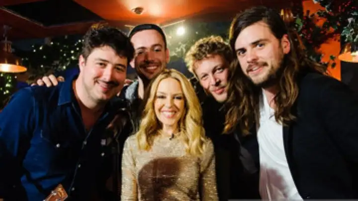 Kylie Minogue e o Mumford & Sons participaram recentemente do programa britânico TFI Friday.