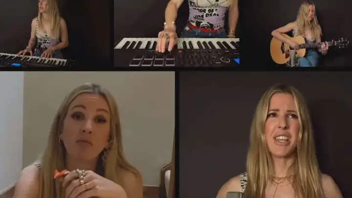 Ellie Goulding fez uma divertida performance de "Worry About Me" para o talk show que James Corden apresenta na televisão dos EUA. Além de ter dado entrevista, falando sobre como está sendo o seu cotidiano nesses dias de quarentena, a cantora mostrou seu lado de multi-instrumentista. ao aparecer tocando violão, baixo e teclado.