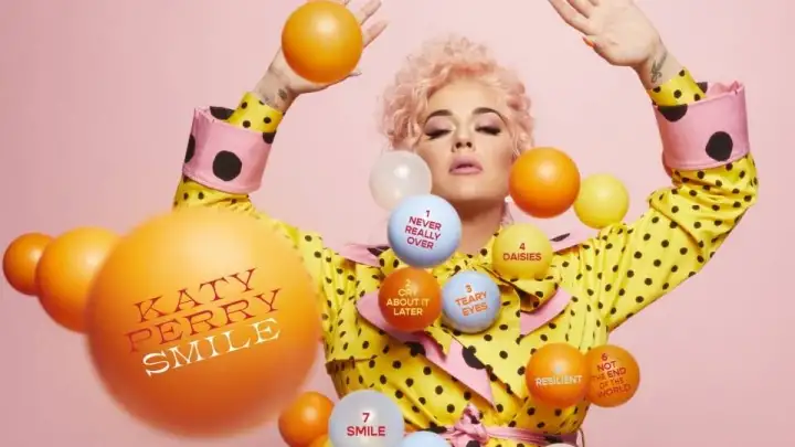 Em uma foto, que mantém a arte de circo do projeto, a cantora mostrou que "Smile" contará com 12 faixas, entre elas, os singles já lançados "Never Really Over", "Daisies", "Harleys In Hawaii" e a faixa que dá nome ao álbum.