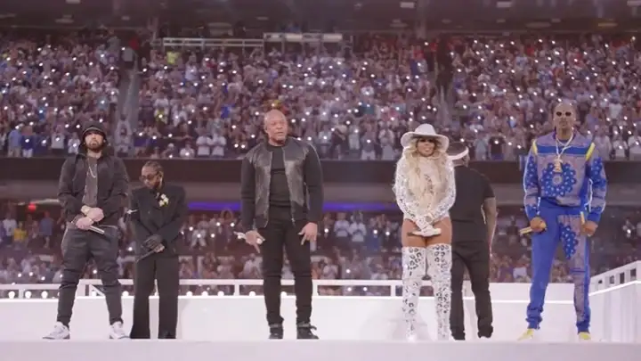 Os fãs de Hip Hop tiveram o Show do Intervalo dos sonhos no Super Bowl LVI, realizado em Los Angeles, nos Estados Unidos, neste domingo (14). A performance de quase 15 minutos reuniu lendas do gênero, com Snoop Doog, Dr. Dre, Eminem, Kendrick Lamar e Mary J. Blige.