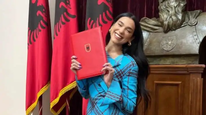 Dua Lipa recebeu o título de cidadã albanesa do presidente do país Bajram Begaj. Nascida em Londres, a cantora é filha de pais albano-kosovares que foram para a Inglaterra fugindo da guerra da Iugoslávia na década de 90 (ela nasceu em 1995). No ano passado, a artista também ganhou o título de Embaixadora Honorária do Kosovo.