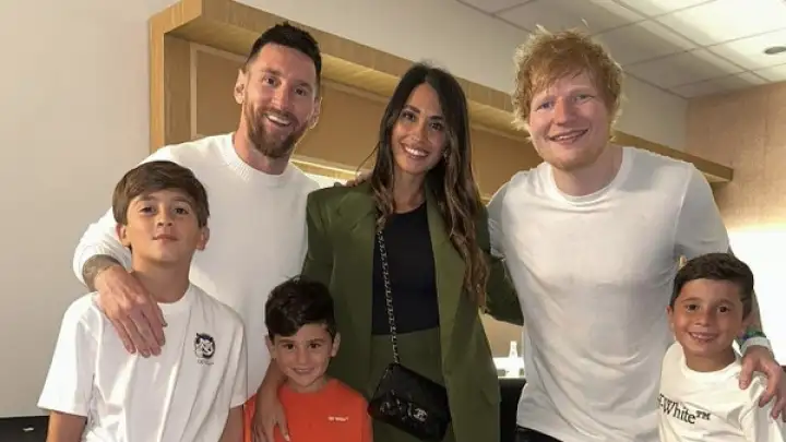 Depois do show, Ed Sheeran recebeu Messi e sua família, no camarim. O encontro foi postado pelo jogador em sua conta no Instagram.