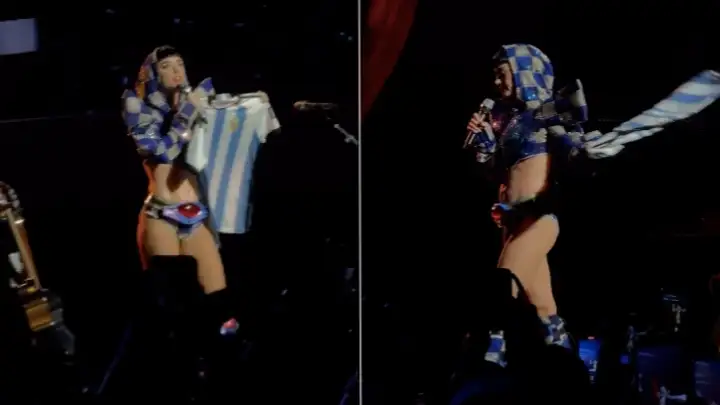 Katy Perry cantou Don't Cry for Me Argentina com a camisa da seleção em Buenos Aires.