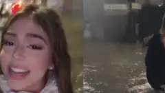 Melody fica presa em enchente no Rio, abandona seu carro e segue a pé pela água durante temporal